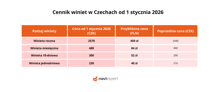 Poniżej nowe stawki, które kierowcy zapłacą za winiety w Czechach od 1 stycznia 2026 roku: