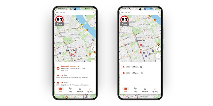 - Dom i Praca – jeżeli jeszcze ich nie dodaliście, teraz zrobicie to jednym kliknięciem. Od tej pory punkty będą zawsze pod ręką – na górze listy (gdy znajdujemy się w domu, na górze pojawi się praca i odwrotnie).