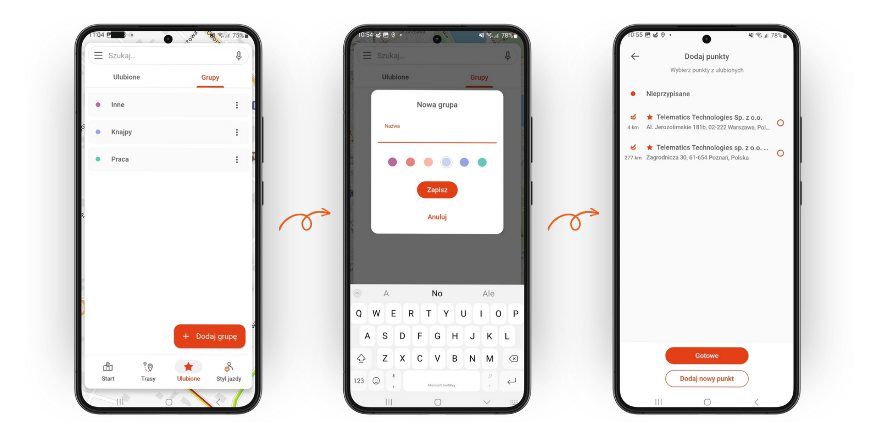 - Ulubione i grupy – ulubione miejsca nie tylko zapiszecie, ale też uporządkujecie w grupach, nadając im odpowiednie kolory. Dzięki temu łatwiej je odnajdziecie na liście.